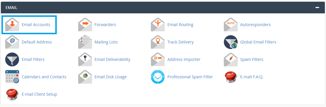 - In your server's cPanel, search/click on "Email Accounts"