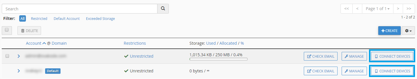- Then click on "Connect Devices" for your default email account or create a new one