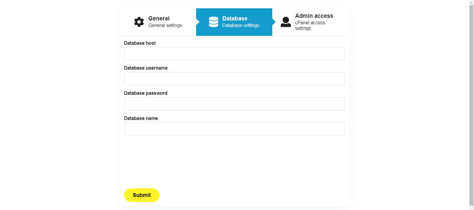 Here, you should already have a database created in your server, in order to do that (if it's not already done), in yout server cPanel, click on "MySQL® Databases"