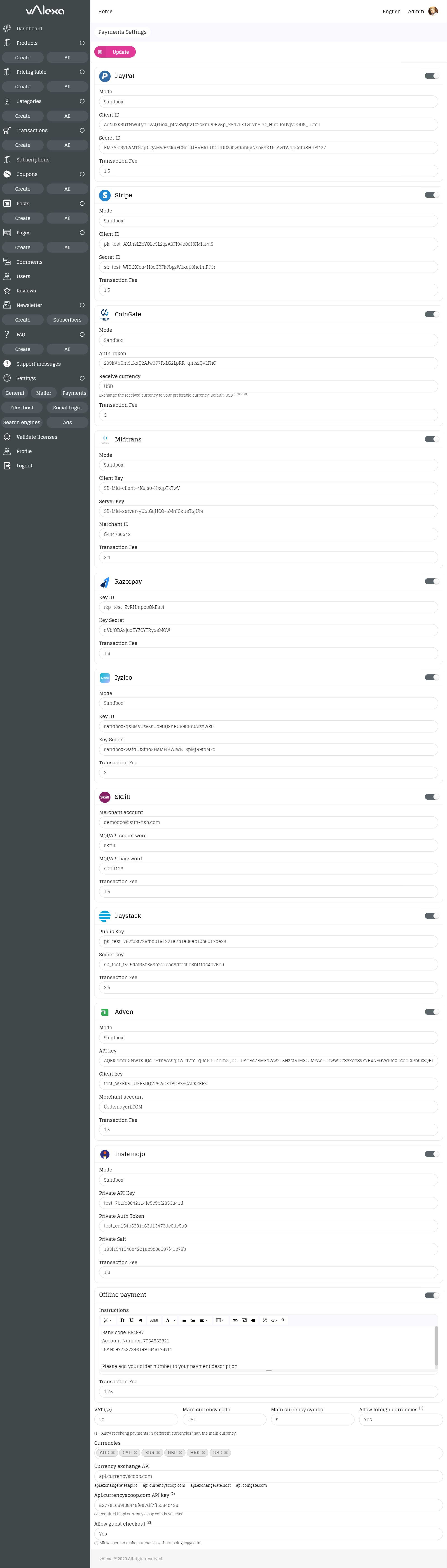 - Items per page : The number of products/items to show per page on the client interface (not the administration).