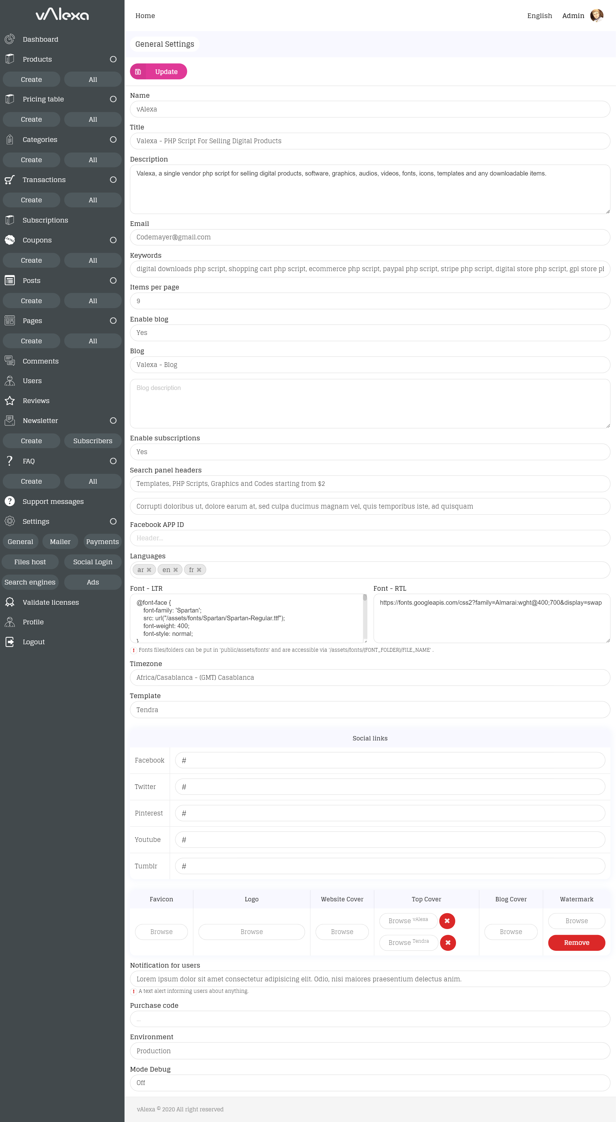 - Once the installation is completed, you will be redirected to the website administration, there, you can start configuring your website (Mailer, Payment gateways, Files hosts, ...).