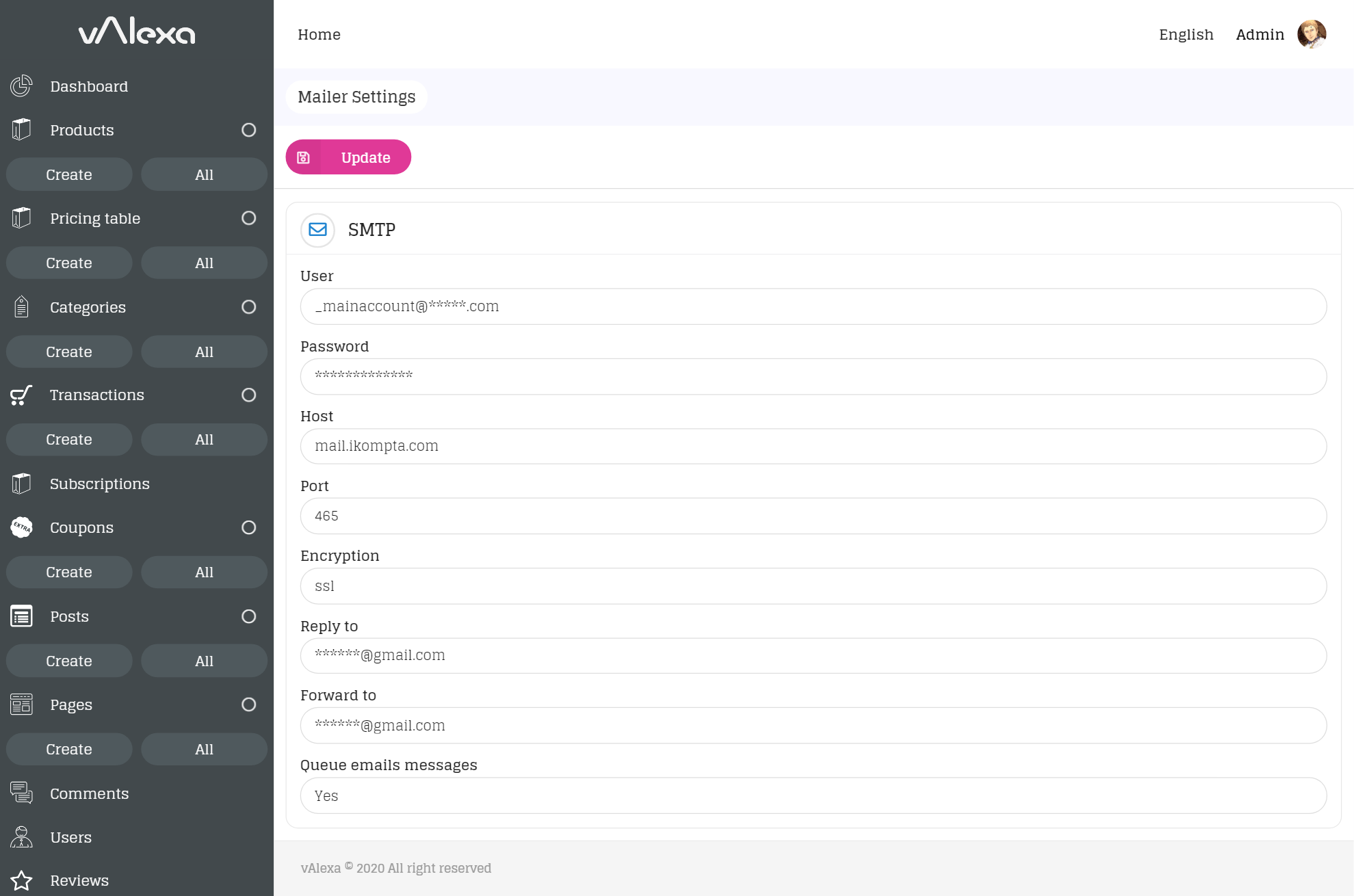 The mailer is required to send and receive email messages, for support, orders ... etc.