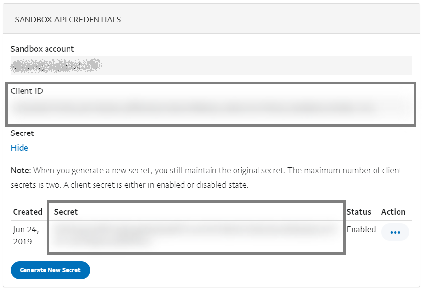 - The default mode is "Sandbox" (testing mode), it has its Client ID and Secret ID (Click on "Show" to see it), if you want to use "Live" mode (real payments, no testing) switch to it and you will be shown the IDs for Live mode.