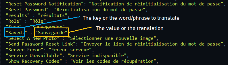 - In "YOUR_WEBSITE_DOCUMENT_ROOT/resources/lang/" create a new json file with the name of your language (take example of the existing ones : e.g en.json, fr.json, ...)
