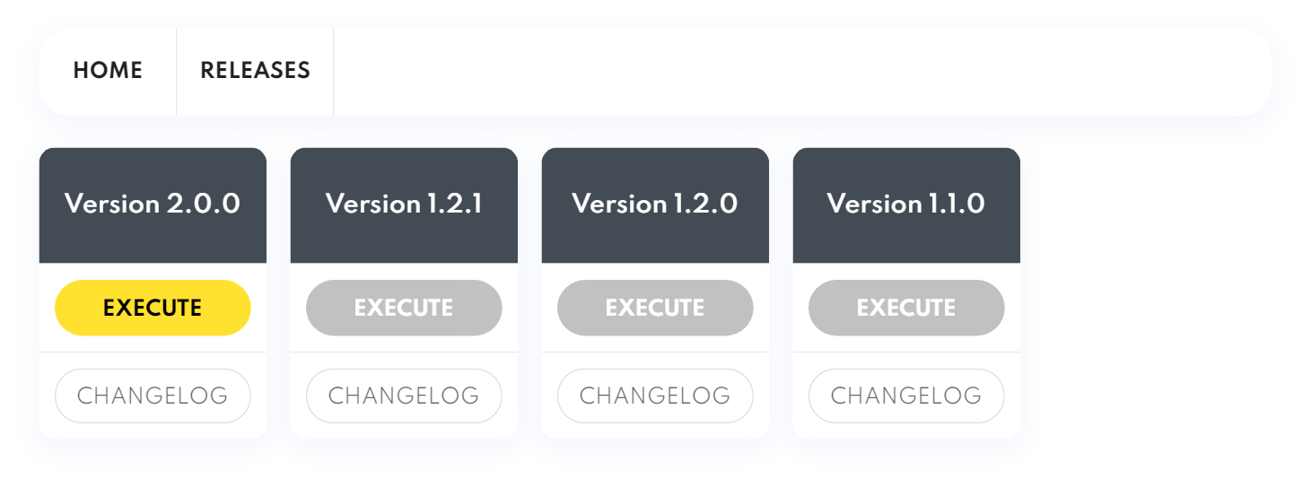 - The old versions should be disabled and the new one have a Yellow button to execute the upgrade.